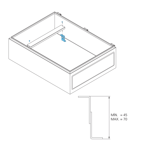 Note: Height adjustment can be made in 5 mm steps between 45 mm and 70 mm.