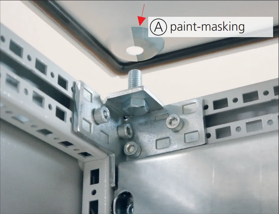 The integrated contacting feature of EAE E-Kabin enclosures ensure a contacting connection between all elements. All elements are made of galvanized sheet steel even if they are painted for esthetical reasons and do not rust under normal conditions preventing resistive contacting.