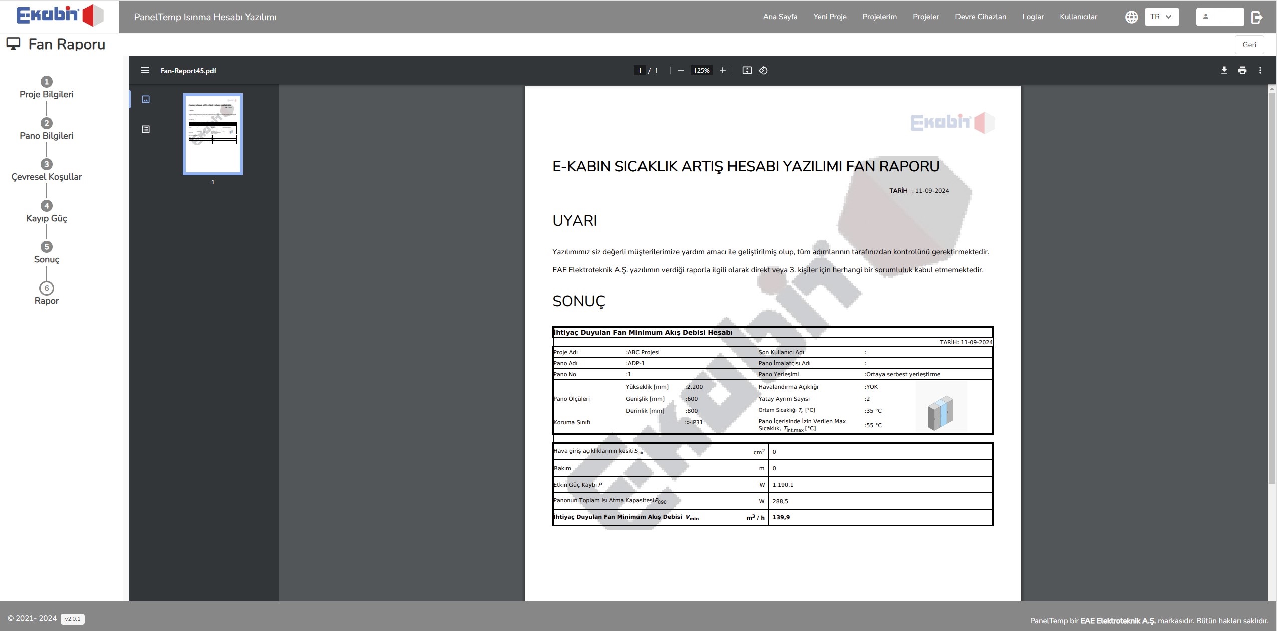 • Fan Hesaplama Aracı : Sıcaklık artışı uygun olmayan panolar için fan hesaplamaları da yazılımımızdan kolayca gerçekleştirilebilir.