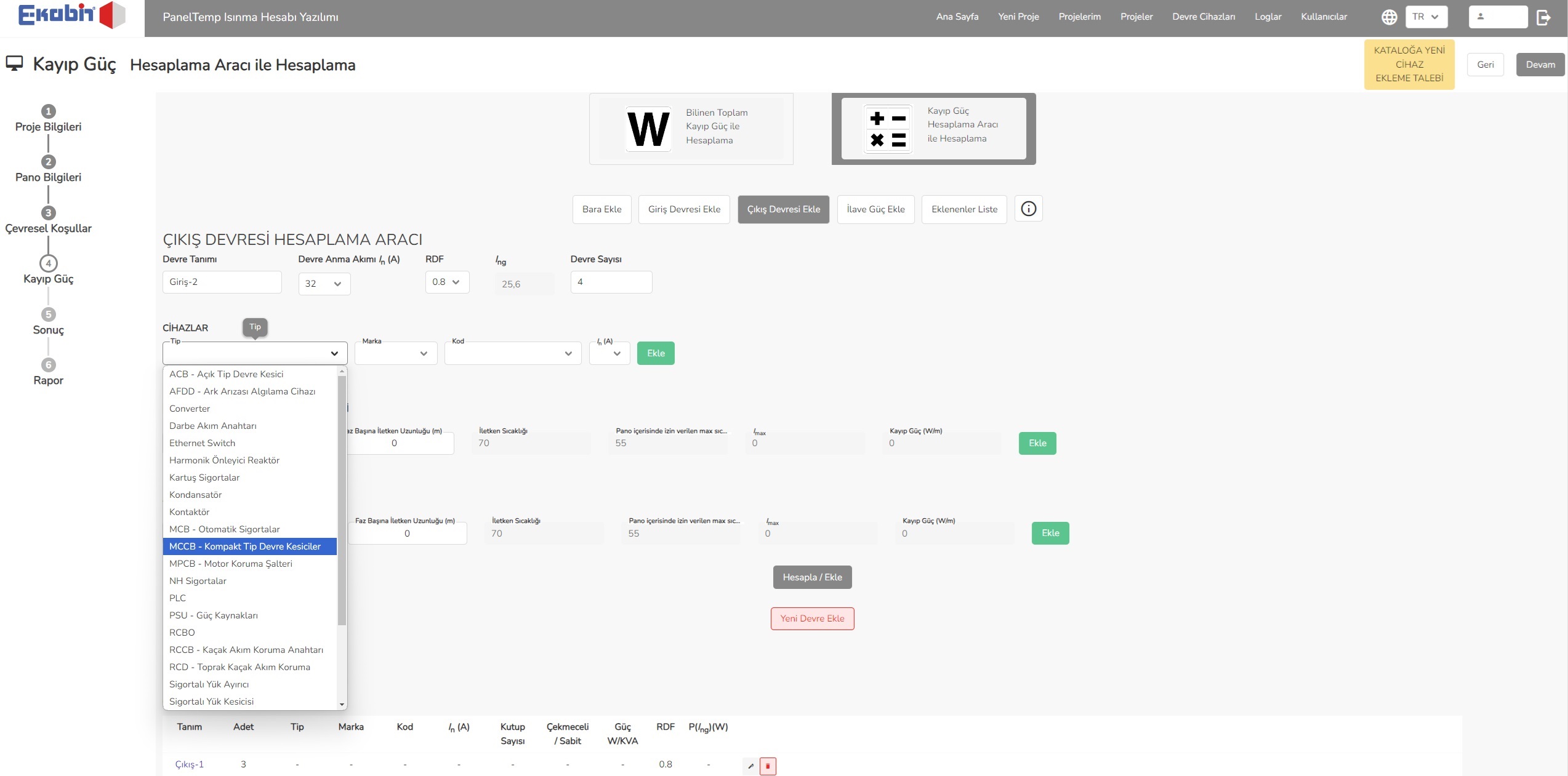 • Geniş Cihaz Kütüphanesi : Geniş cihaz kütüphanesi sayesinde pano içerisindeki cihazların toplam kayıp güçleri hızlıca belirlenebilir. Ayrıca bu kütüphaneye gerekli adımları izleyerek cihaz da ekletilebilir.