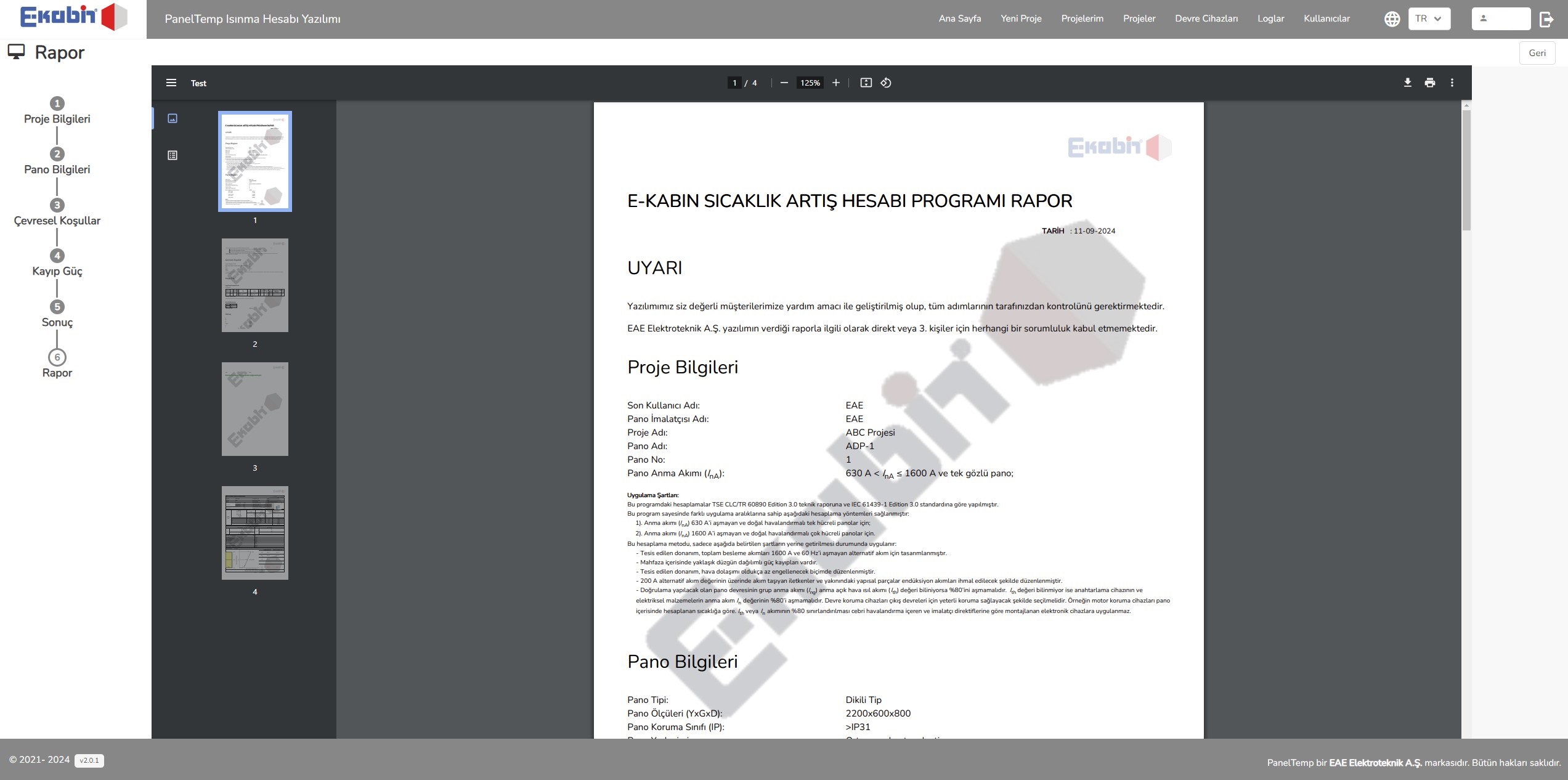 • Detaylı Raporlama : Her pano için ayrı ayrı hazırlanmış IEC standartlarına uygun detaylı raporlar yazılımımızdan alınabilir.